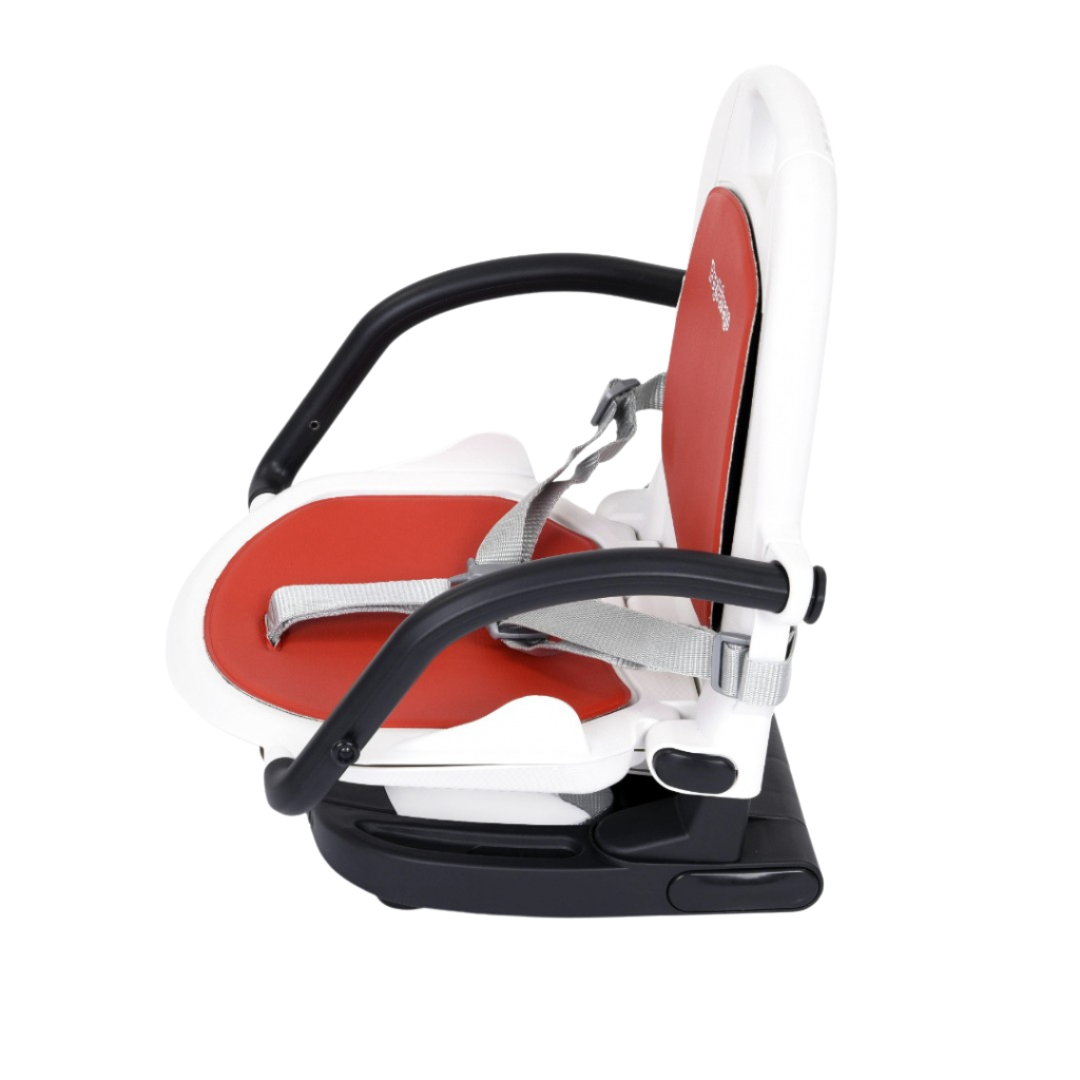 The Rialto’s unique and ergonomic design gives it a modern look, while allowing it to fold easily and compactly. It comes with a dishwasher-safe folding tray that can be easily removed. The booster chair is outfitted in Prima Classe material that is easy to clean and comes in Fragola Red gender-neutral color that are the perfect complement to any kitchen.